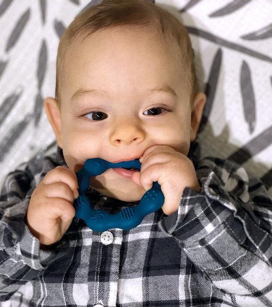 Set of 2 Silicone Teething Rings – Blue & Mustard